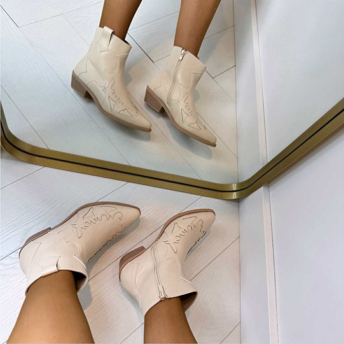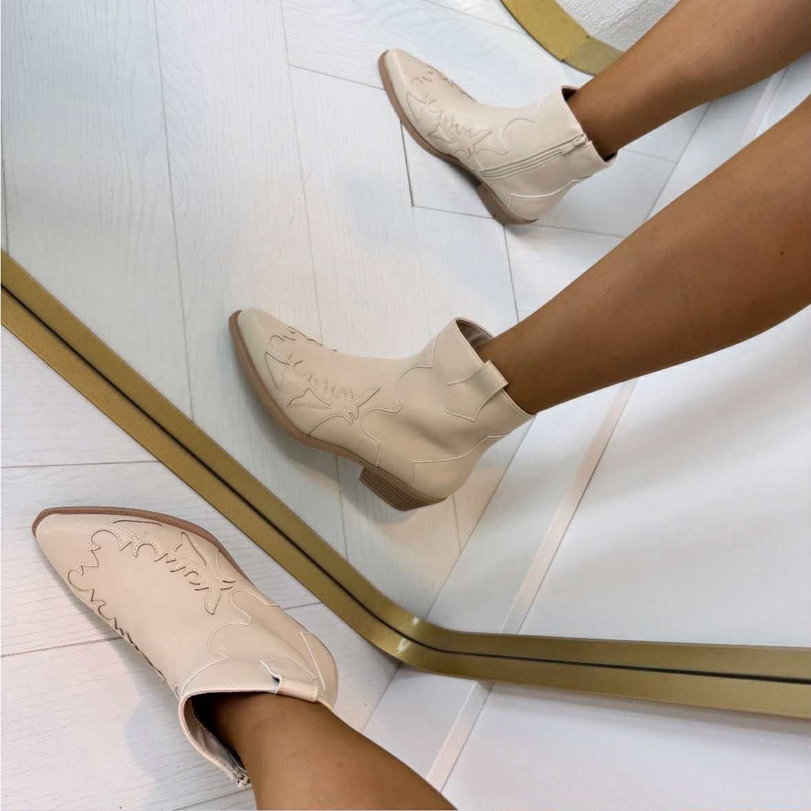 *SALE* SARA COWBOY BOOT DES668-*1* BEIGE/PU
