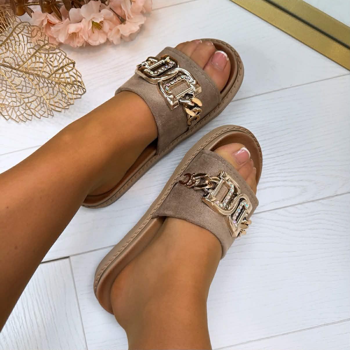 We hebben weer HEERLIJKE slippers binnen! Dit model heeft een comfy zool en prachtige SPARKLING details!! Ze hebben een super COMFY voetbed. Deze makkelijke slippertjes zijn een MUSTHAVE komend seizoen!