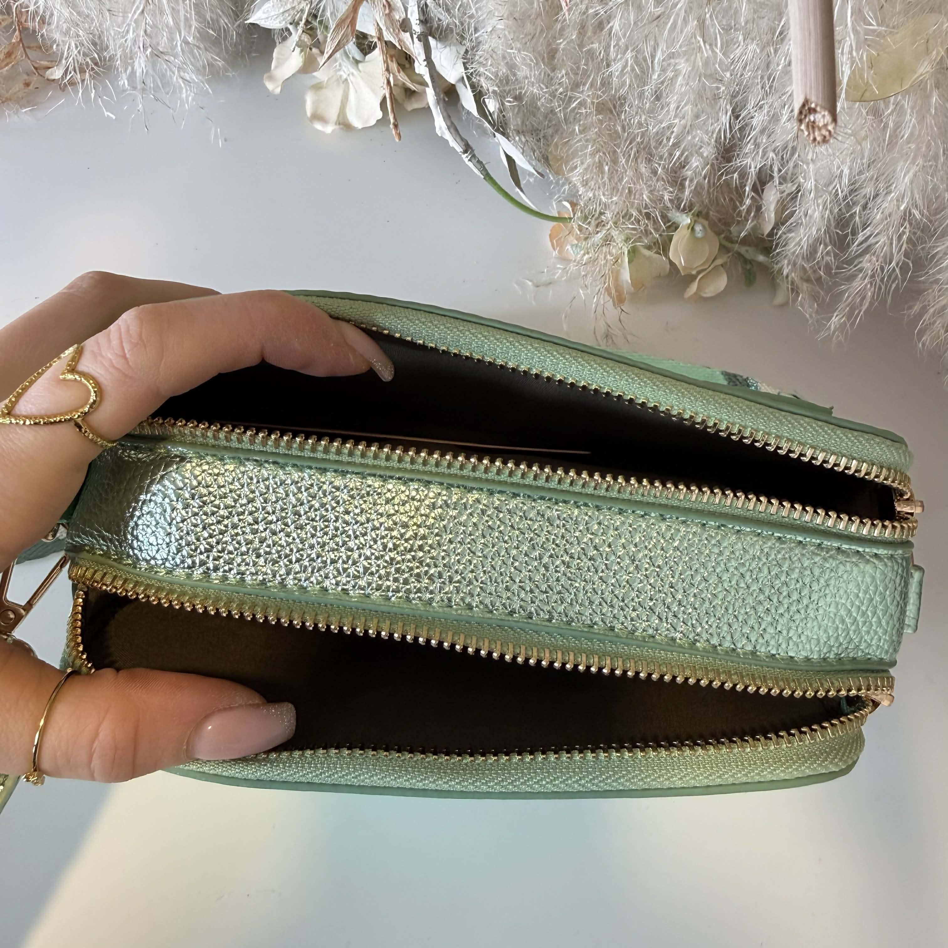 OHMYYYY, dit gave dubbel zip tasje wil je toch hebben?! Het tasje heeft een shine look en is echt super handig door de 2 apparte vakjes! Je kunt je telefoon erin kwijt, je pasjes, je geld en je lipgloss! Alles wat je nodig hebt voor een avondje uit, een feestje of een festival!