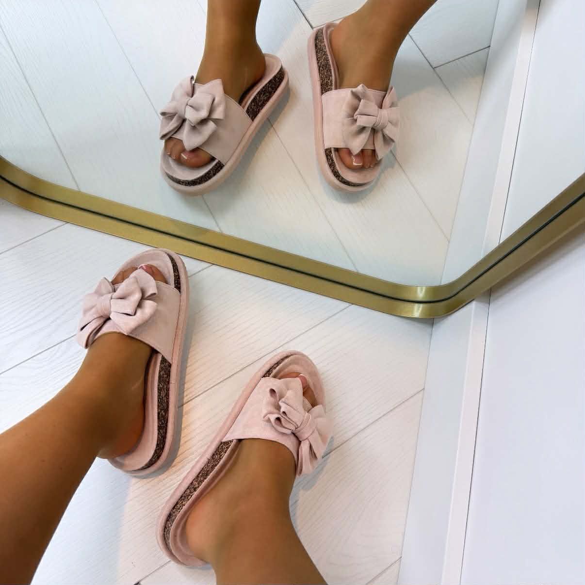 Dit bestseller model is weer binnen! Dit keer heeft de slipper een leuke dubbele strik op de band! Ze hebben een COMFY voetbed. Deze makkelijke slippertjes zijn een MUSTHAVE komend seizoen en ze passen bij al jouw outfits!