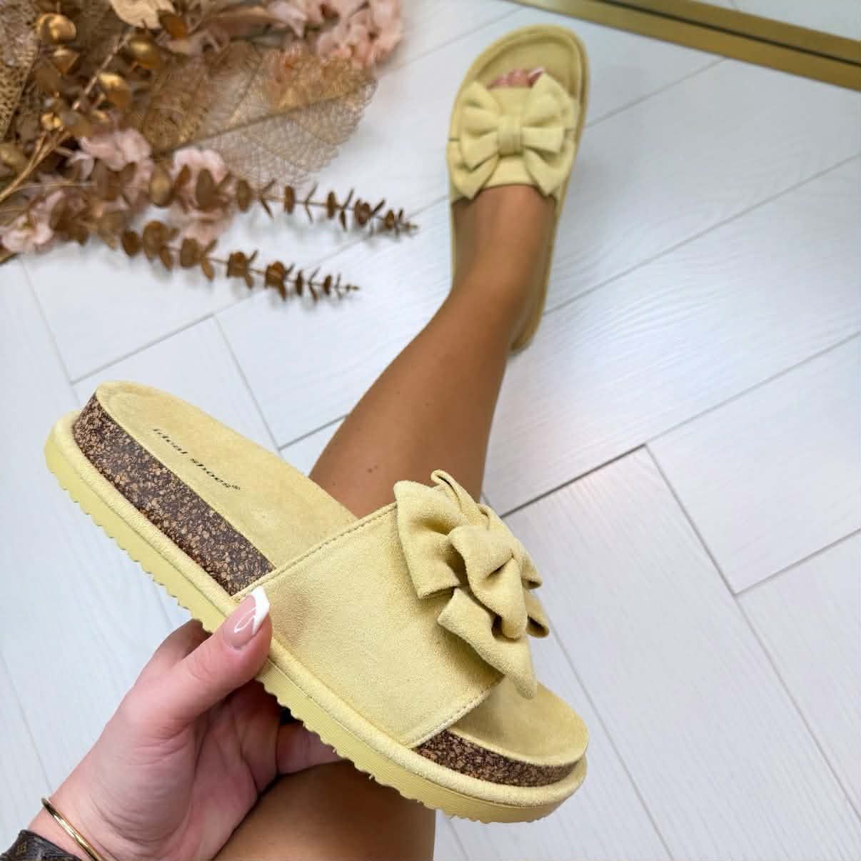 Dit bestseller model is weer binnen! Dit keer heeft de slipper een leuke dubbele strik op de band! Ze hebben een COMFY voetbed. Deze makkelijke slippertjes zijn een MUSTHAVE komend seizoen en ze passen bij al jouw outfits!