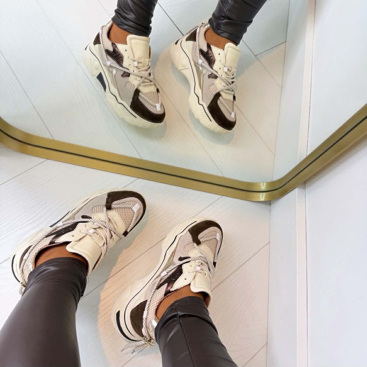 De Jupiter sneaker zie je ook dit seizoen weer terug in nieuwe kleuren. Een sneaker met een hoge / dikke zool als dit model is een must in je schoenenkast. Deze sneaker voor dames is aan de buitenzijde van suede en de binnenzijde is volledig van leer. De veters lopen door op de hak, dus opvallen doe je dan ook zeker! Doe jij mee met de trend?
