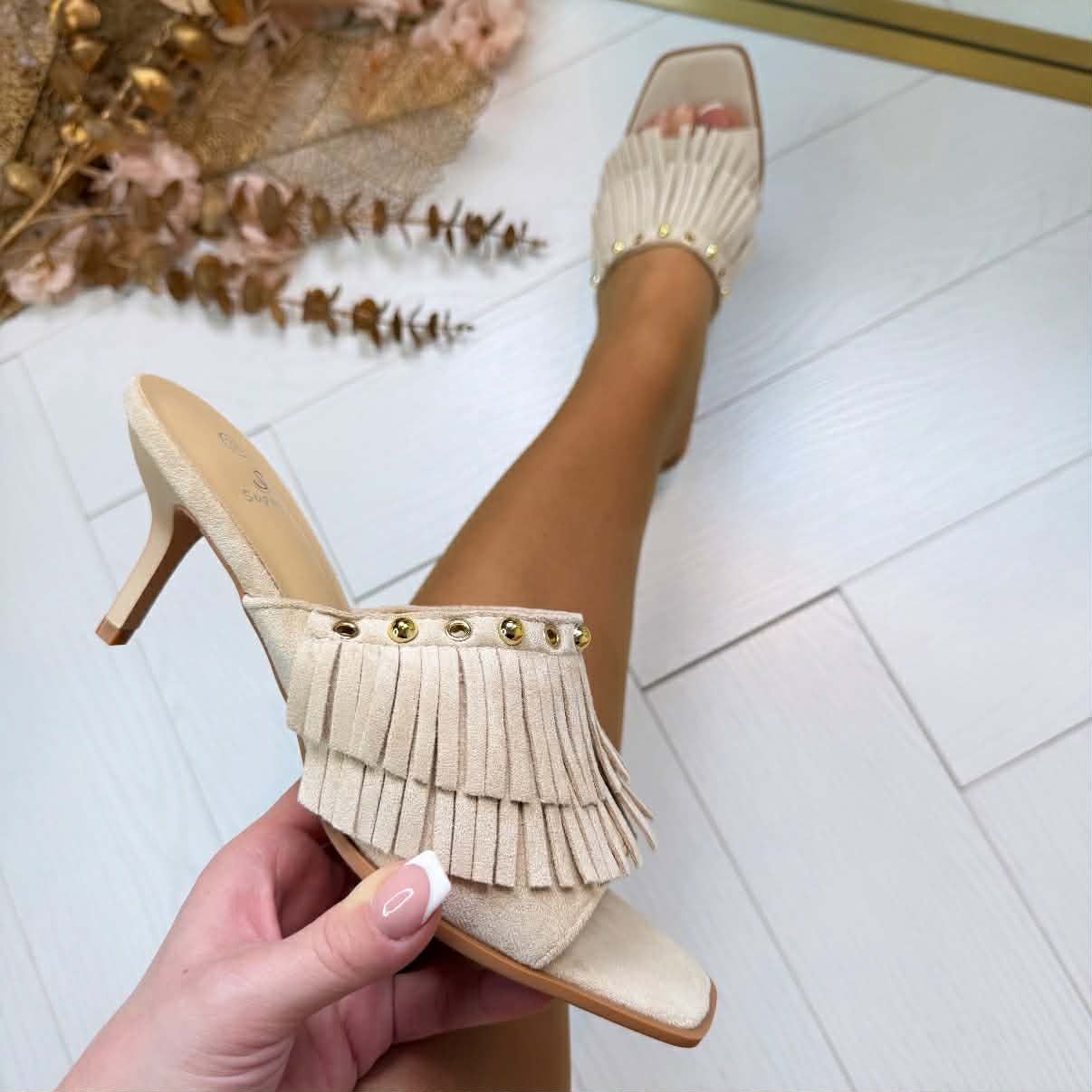 FRINGE SLIPPER MET HAK 826 BEIGE