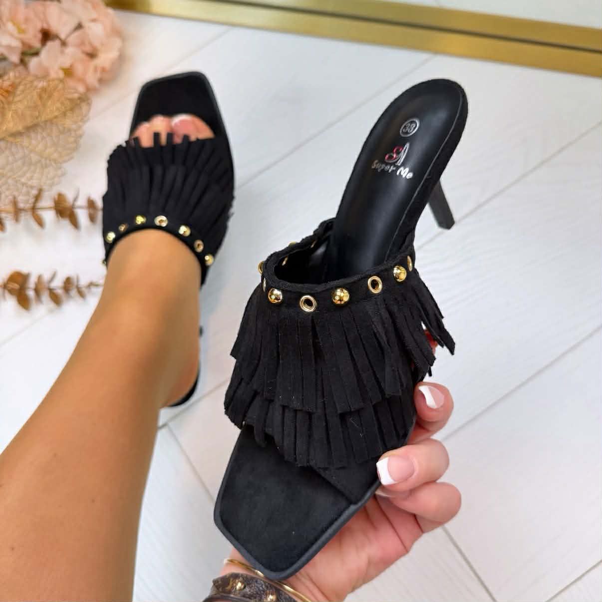 FRINGE SLIPPER MET HAK 826 BLACK