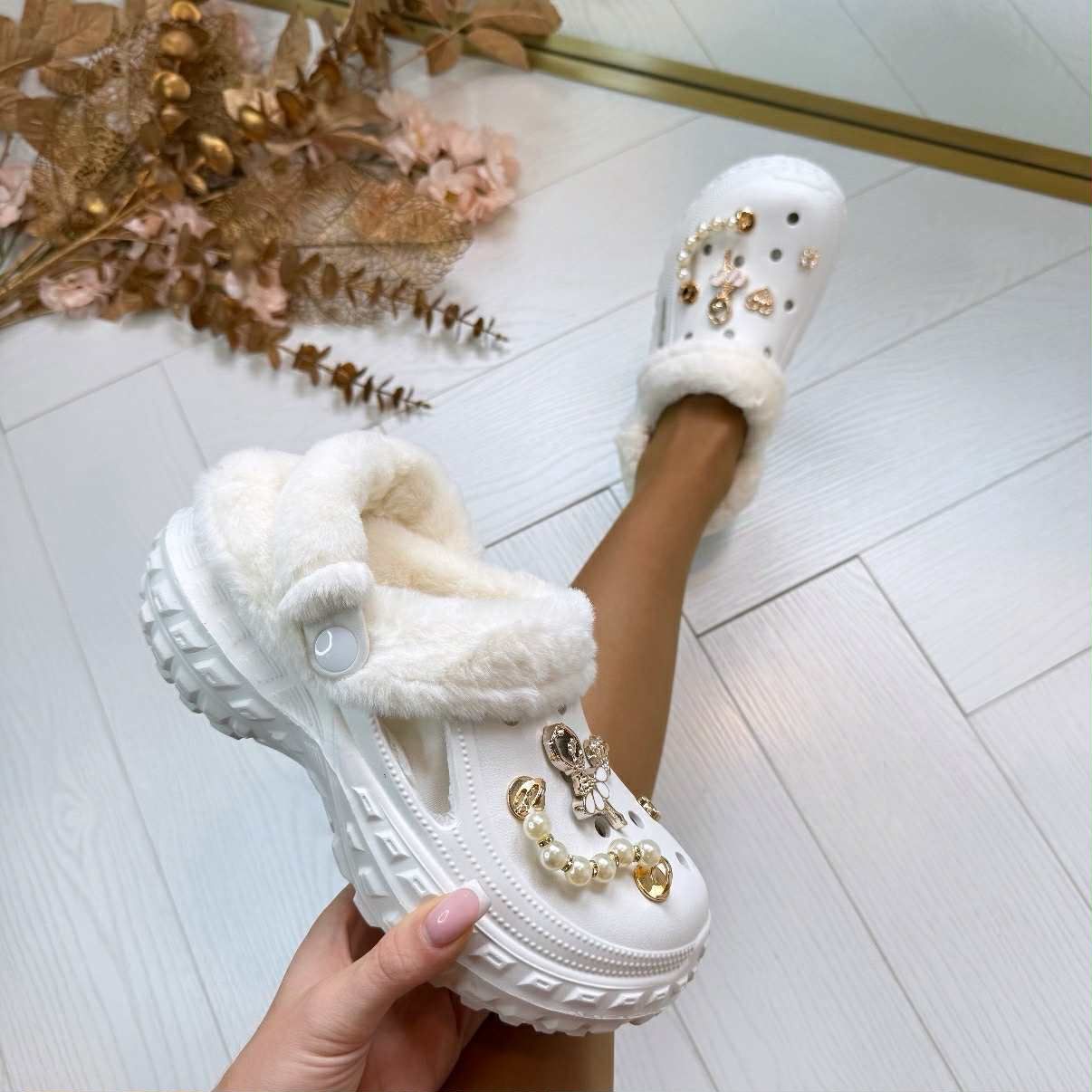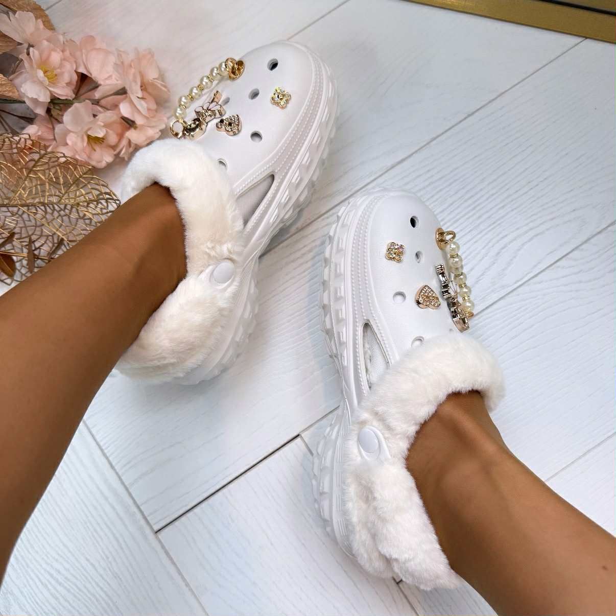 OHMYYYY, we hebben SUPER leuke instappers binnen met een HEERLIJKE zachte voering! De PRACHTIGE bedels bovenop maken de instapper echt af! Ze zitten lekker warm en zacht en ze zijn natuurlijk SUPER makkelijk om in te stappen! Vul jouw schoenenkast aan met deze instappers!