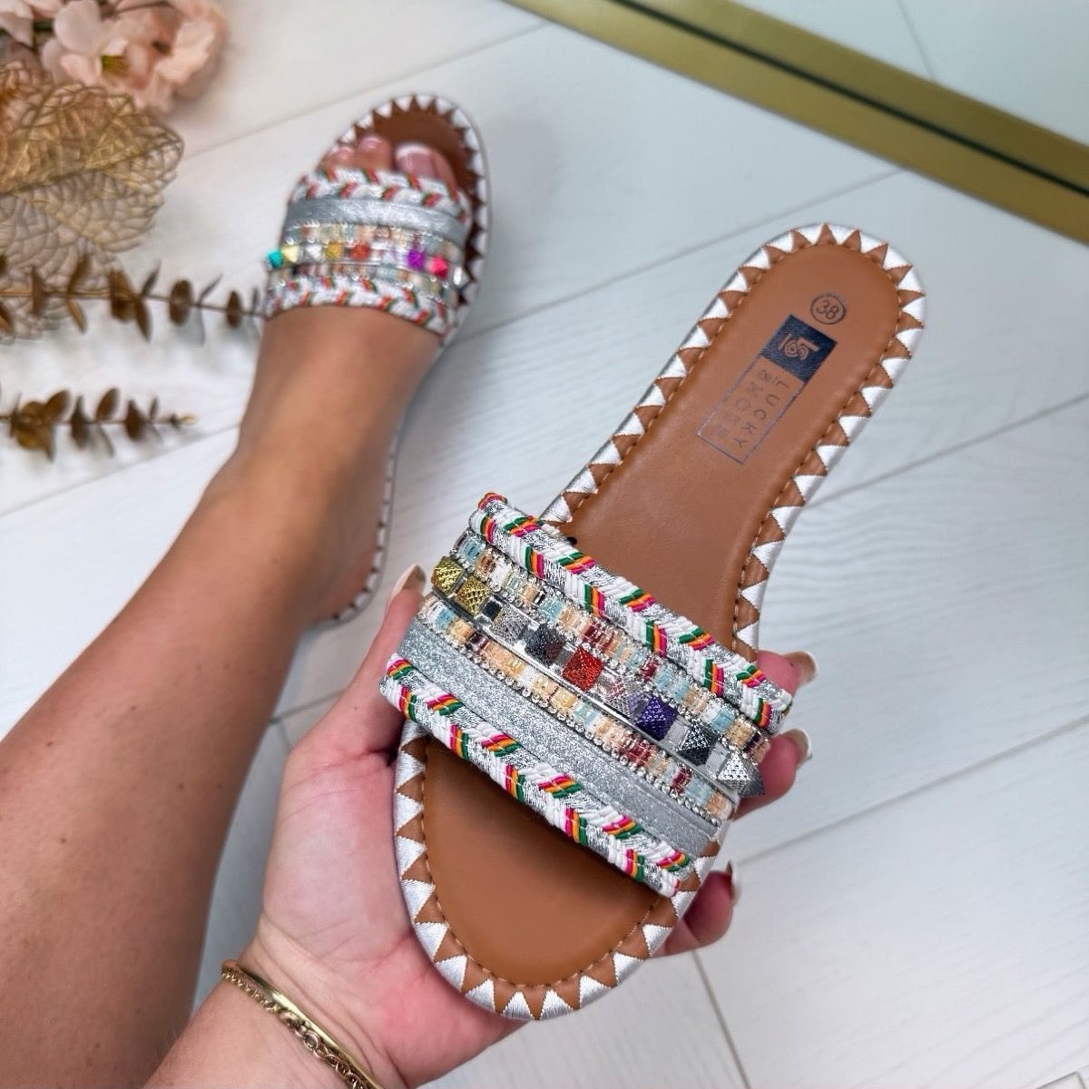 We hebben weer SUPER leuke slippertjes binnen met hele LEUKE stiksels, kleurtjes, diamantjes en studs! Deze slippers zitten HEERLIJK comfy door de brede band en het lekkere voetbed!