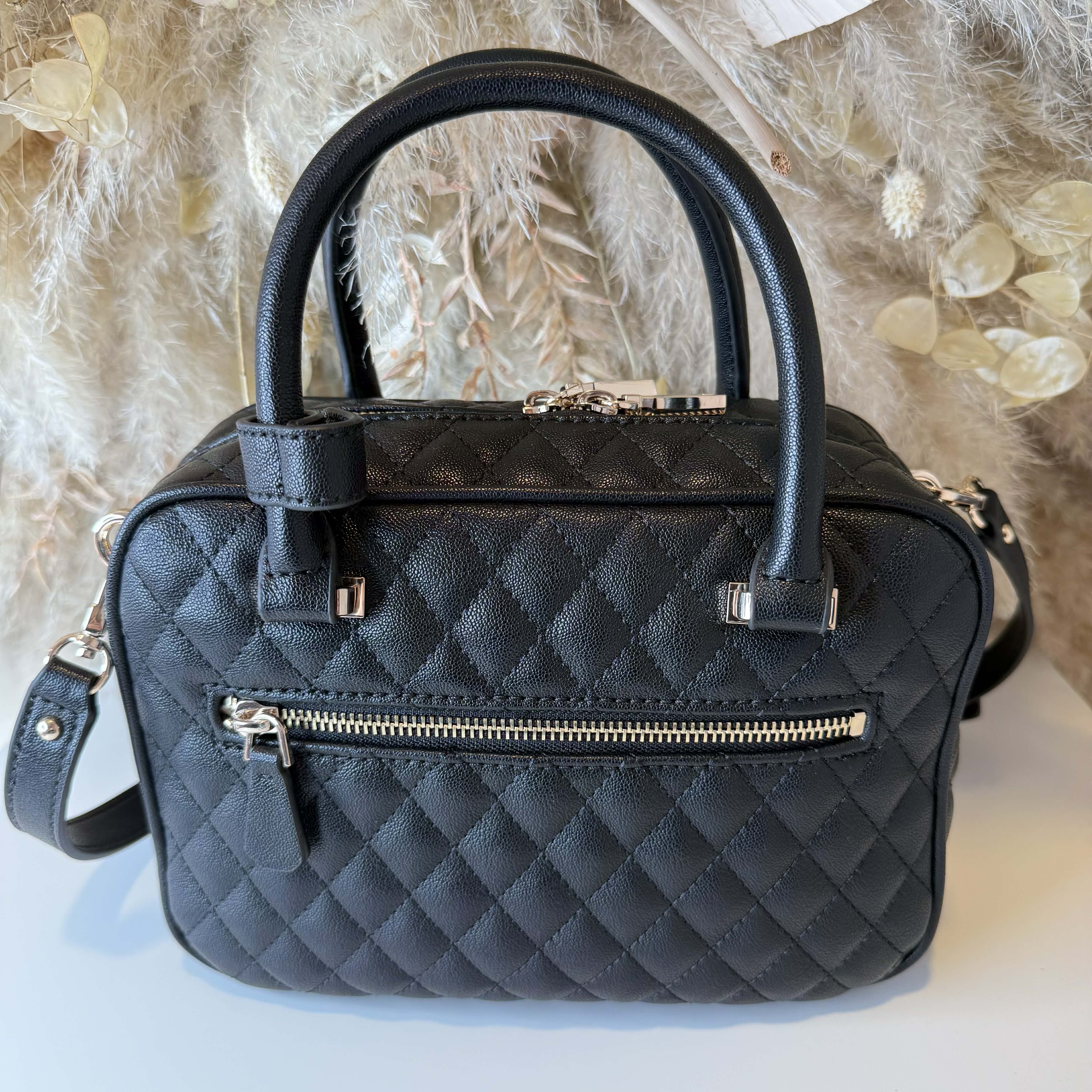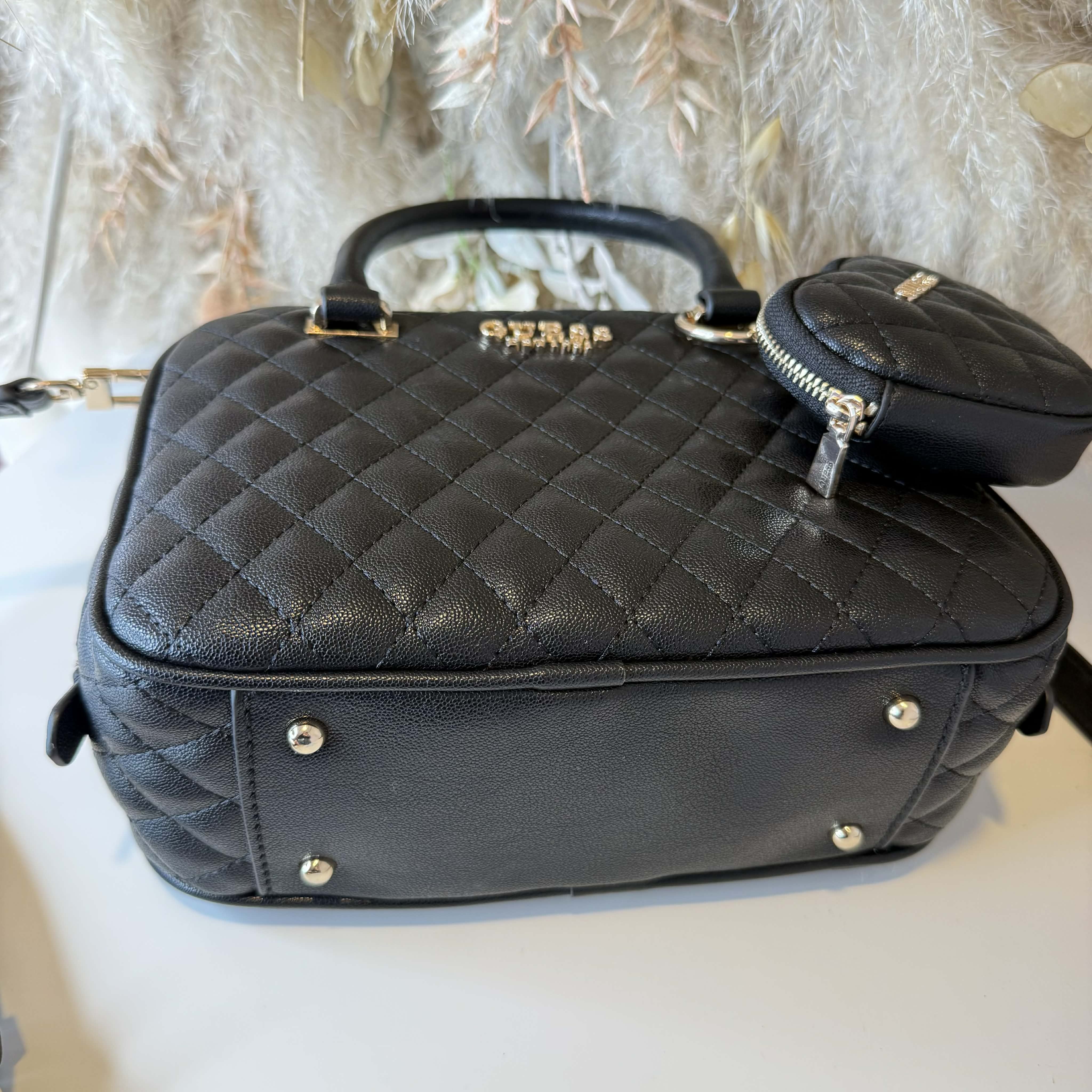 GUESS ATABEY BOX SATCHEL BAG QG989405 BLACK