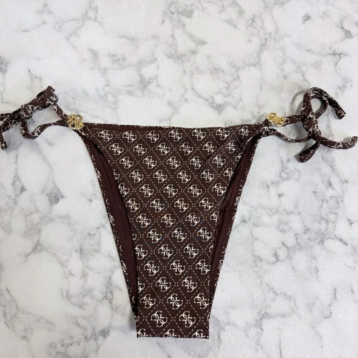 We hebben inmiddels weer een SUPER gave collectie binnen van Guess BEACH! Deze collectie zit vol leuke printjes, rhinestones en leuke kleurtjes voor komend seizoen! Dit gave bikini broekje heeft prachtig GUESS logotjes in het beige en strikjes aan de zijkanten. Combineer dit broekje met bikini topje, MIX & MATCH!