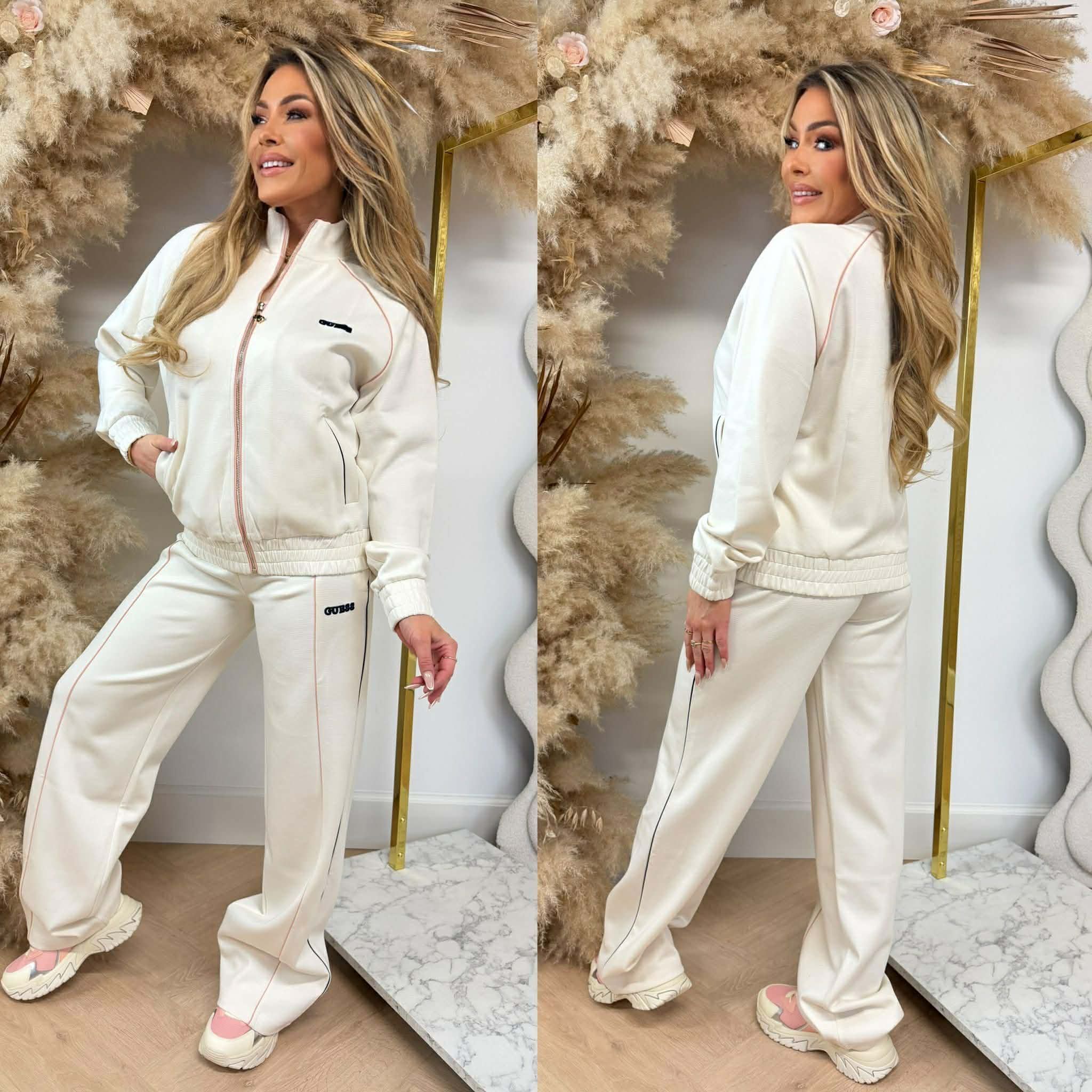 We hebben zojuist weer een super gaaf vest binnen van het merk GUESS! Het vest heeft gave roze details. Ook heeft het vest een mooie boord waardoor hij perfect aansluit! Combineer het met de gave bijpassende wide leg pants!