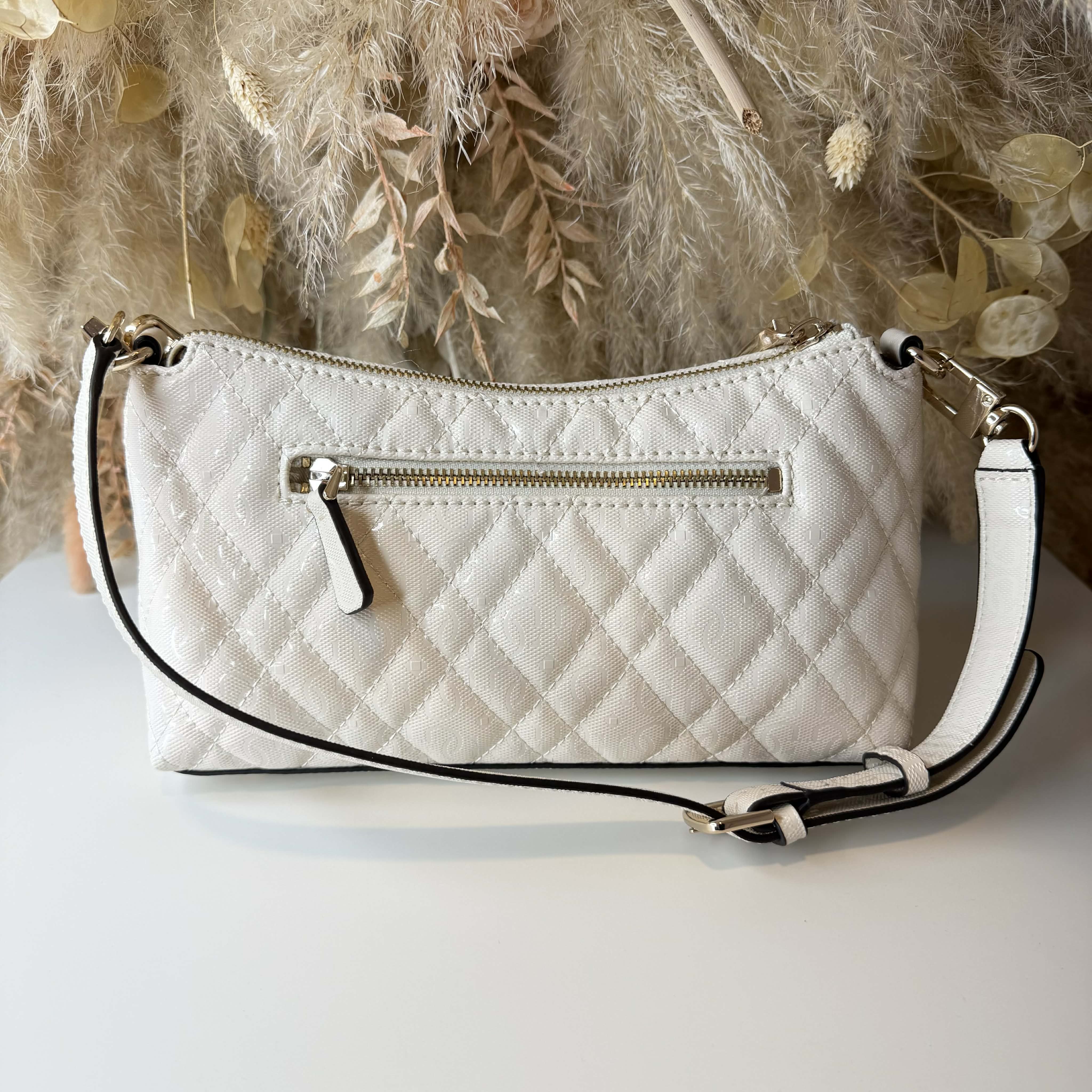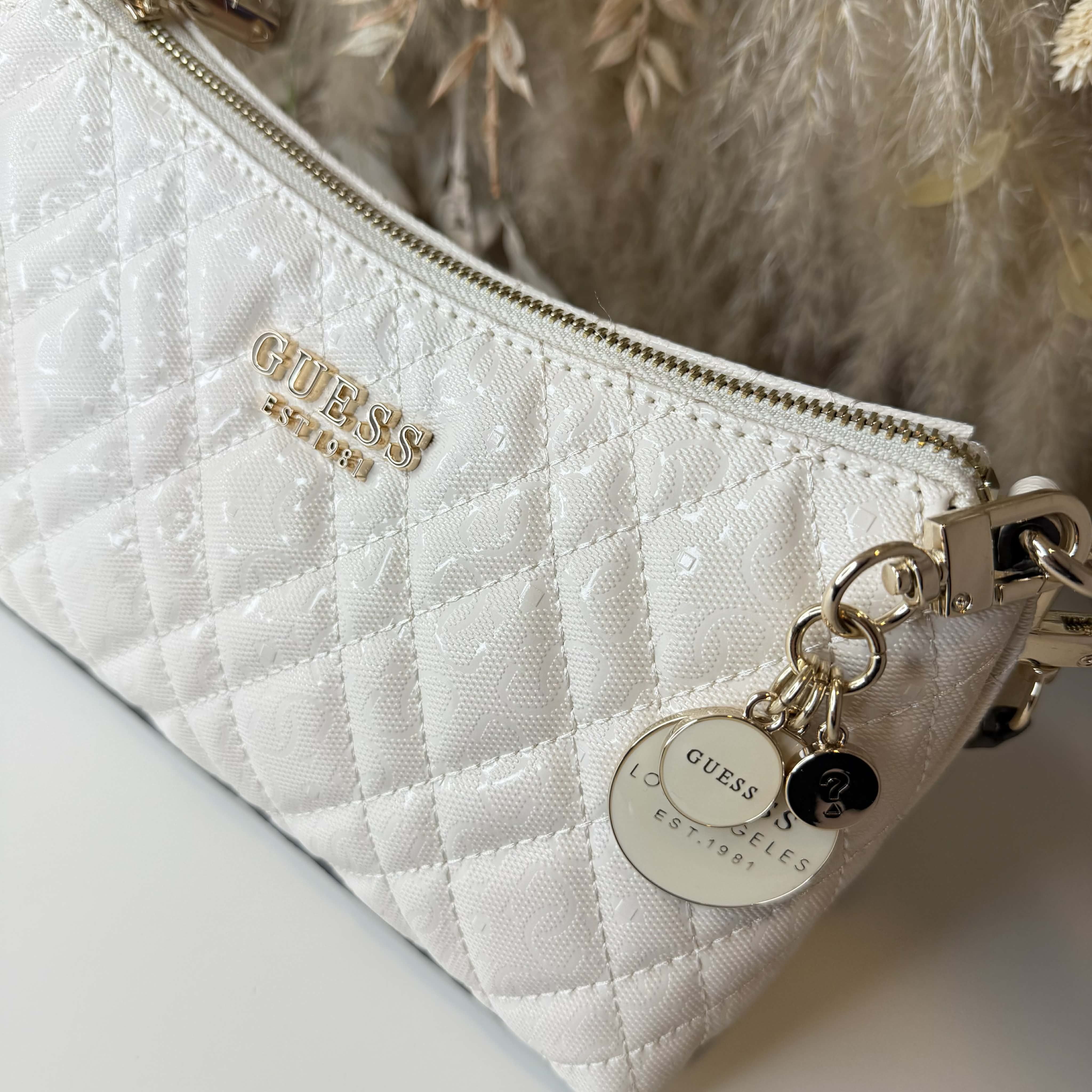 YAAAAYY, we hebben weer een SUPER mooie tas binnen van Guess! Deze tas heeft een prachtige SHINY look en een allover logo print. Het is een schoudertas en af te sluiten met een rits.