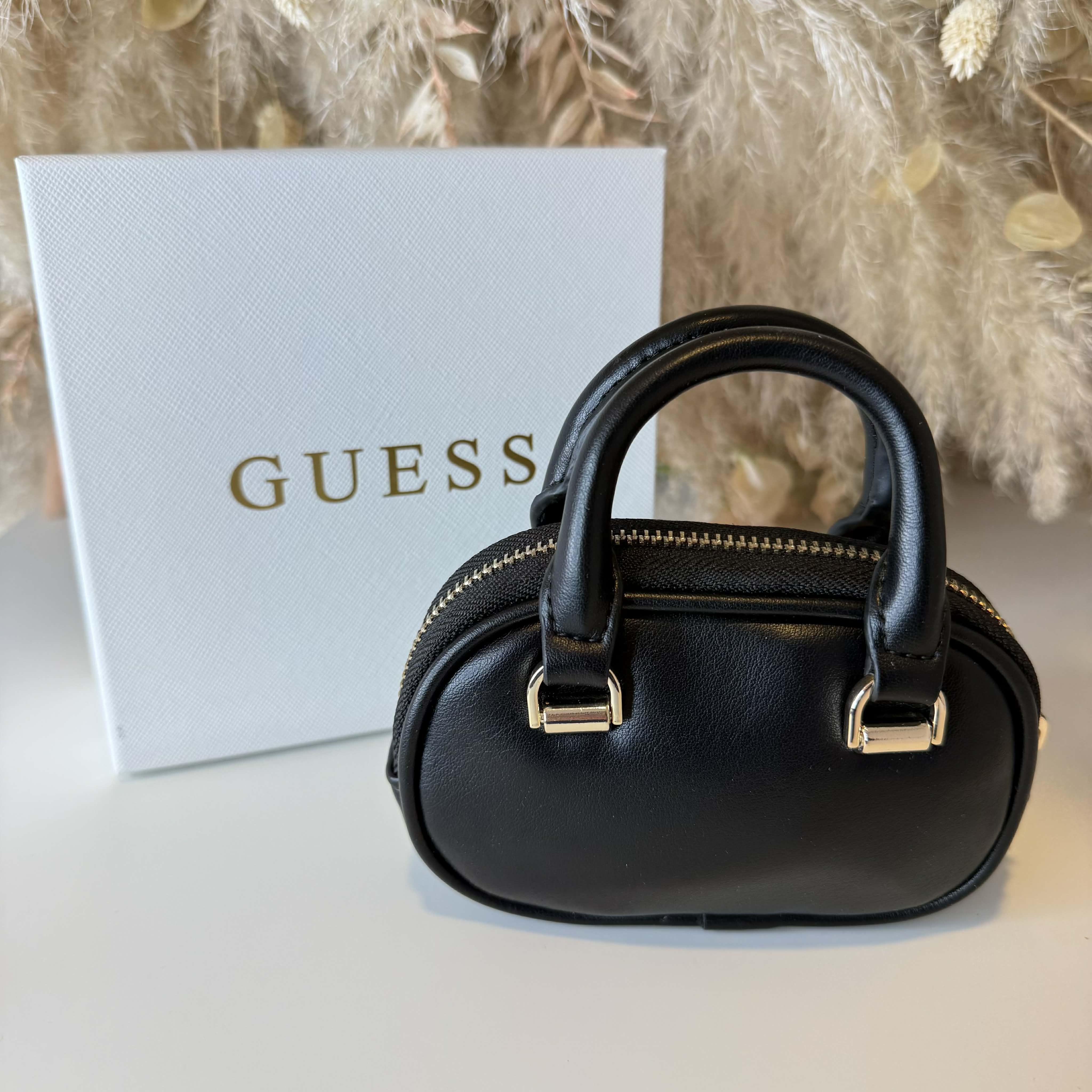 We hebben nu ook SUPER leuke sleutelhangers/tashangers binnen van Guess! Dit mini tasje is super makkelijk voor kleine spulletjes/ contant geld in op te bergen!