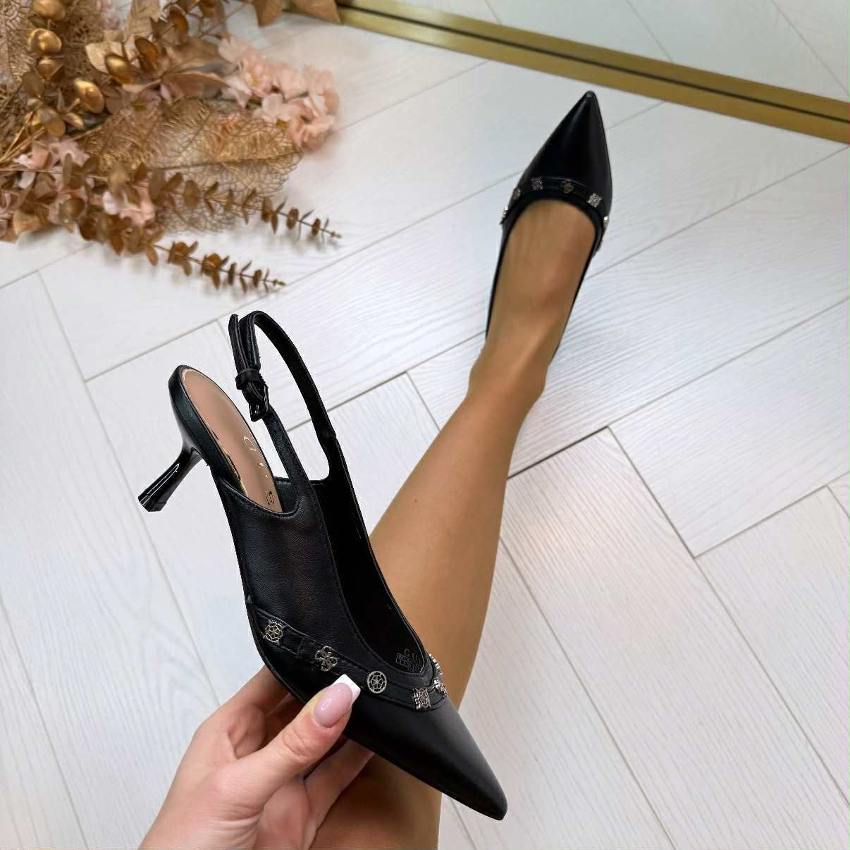 WAUWWW, wat een PRACHTIGE hakken hebben we binnen van GUESS! Ze zijn leather look en hebben een logo randje als detail! De schoentjes hebben een subtiele hak en een gespje aan het bandje, zodat je 'm nog iets kunt verstellen!