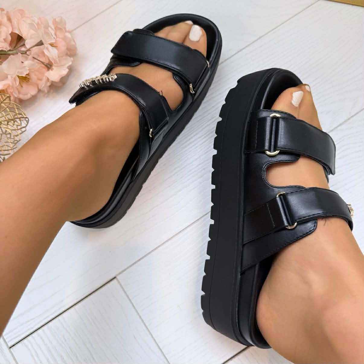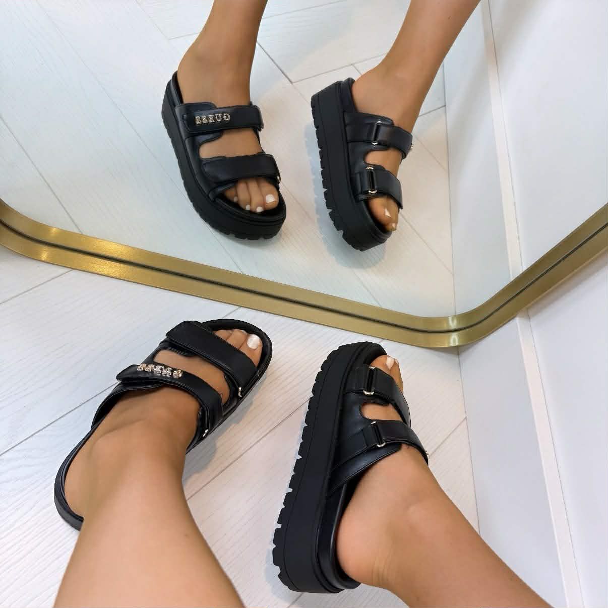 OHMYYYYYY, kijk nou!! Wat een GAVE slippers we binnen hebben van Guess! Ze hebben een plateau met een HEERLIJK voetbed!! Handig te verstellen met het klittenband en een PRACHTIG logo!