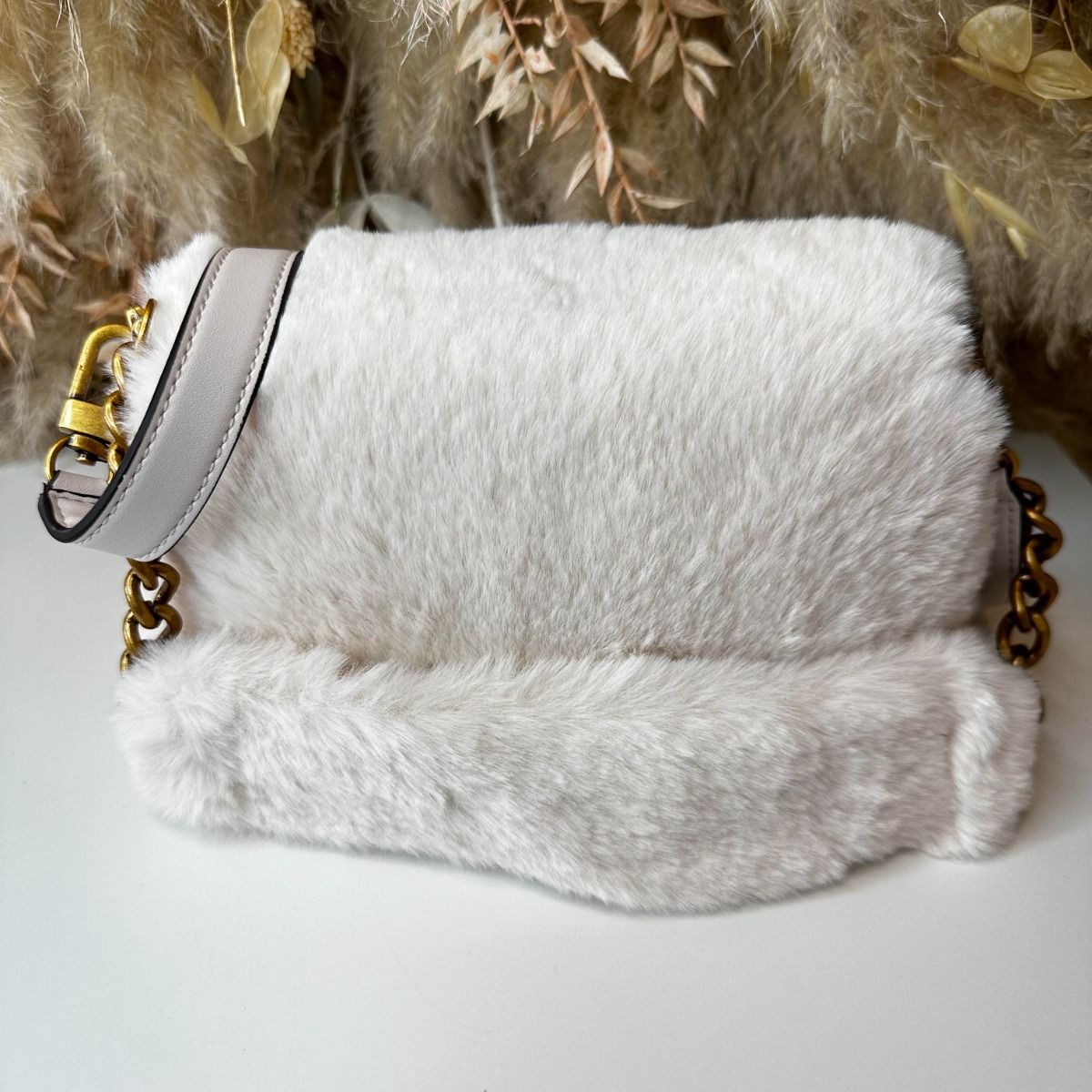 GUESS SAMIA FAKE FUR FLAP BAG WB935520 STONE