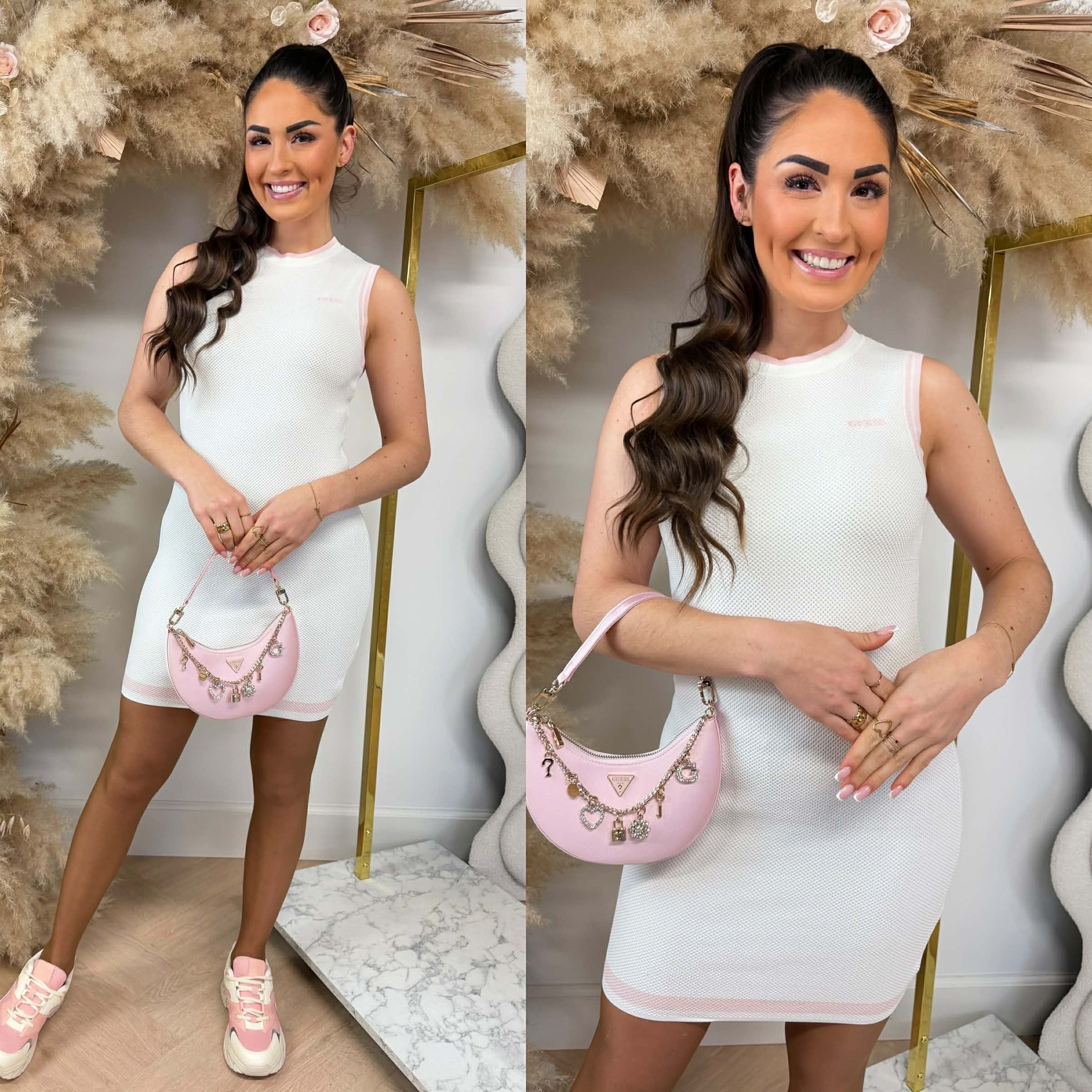 YEAH! We hebben zo'n GAVE collectie van GUESS! Deze collectie zit vol rhinestones, shiny materialen en prachtige details! KIJK nou toch eens wat een PRACHTIGE jurk we binnen hebben! Deze jurk is echt super CLASSY, prachtig materiaal en een leuke gekleurd streepje als detail!