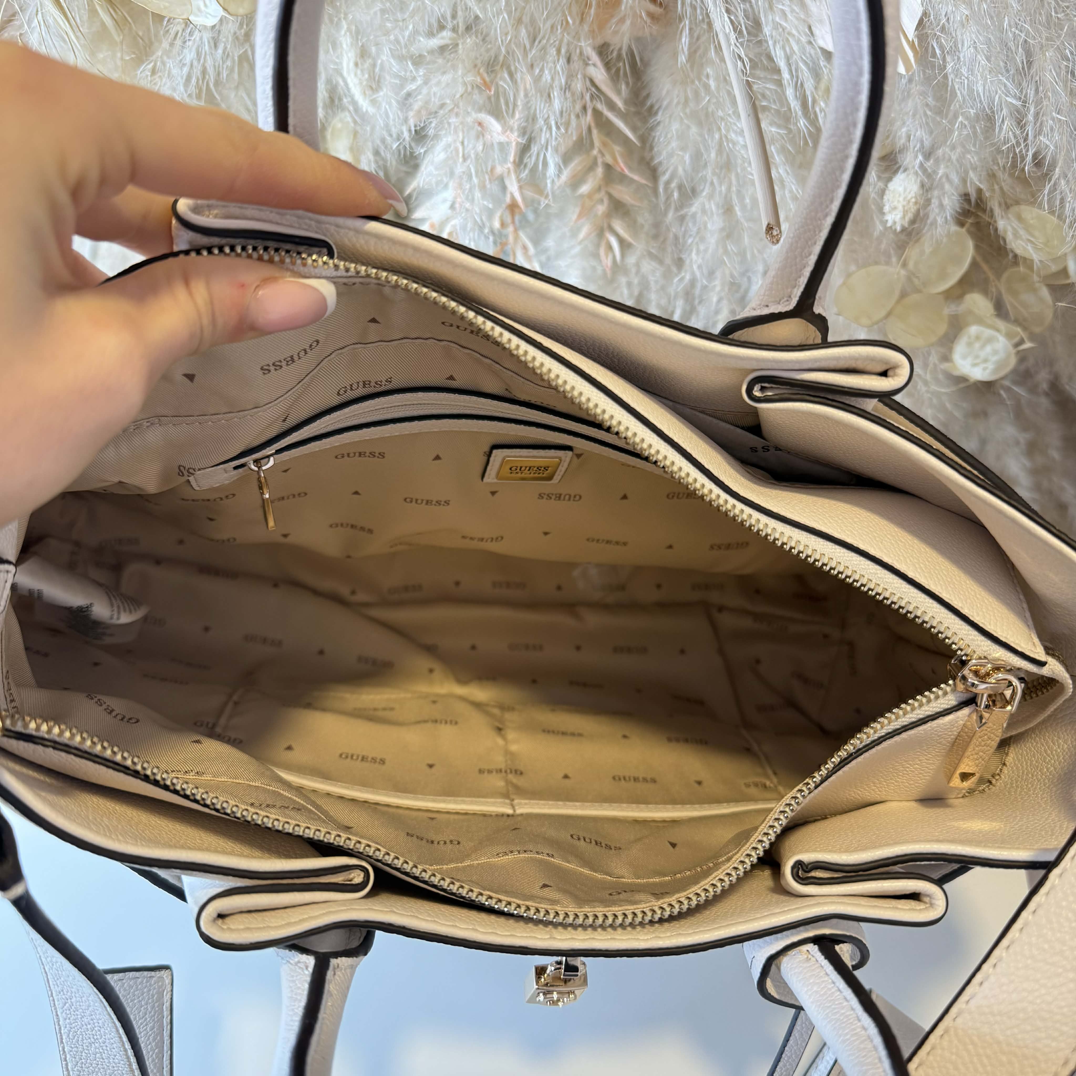 OHMYYYY, we hebben een MEGA leuke tas binnen van GUESS! Deze tas is echt een MUSTHAVE! Lekker groot, als handtas en crossbody te dragen, een middenvak en aan de zijkanten nog 2 vakken en nog veel meer! Bekijk de foto's goed, want er zitten veel details aan deze PRACHTIGE tas!