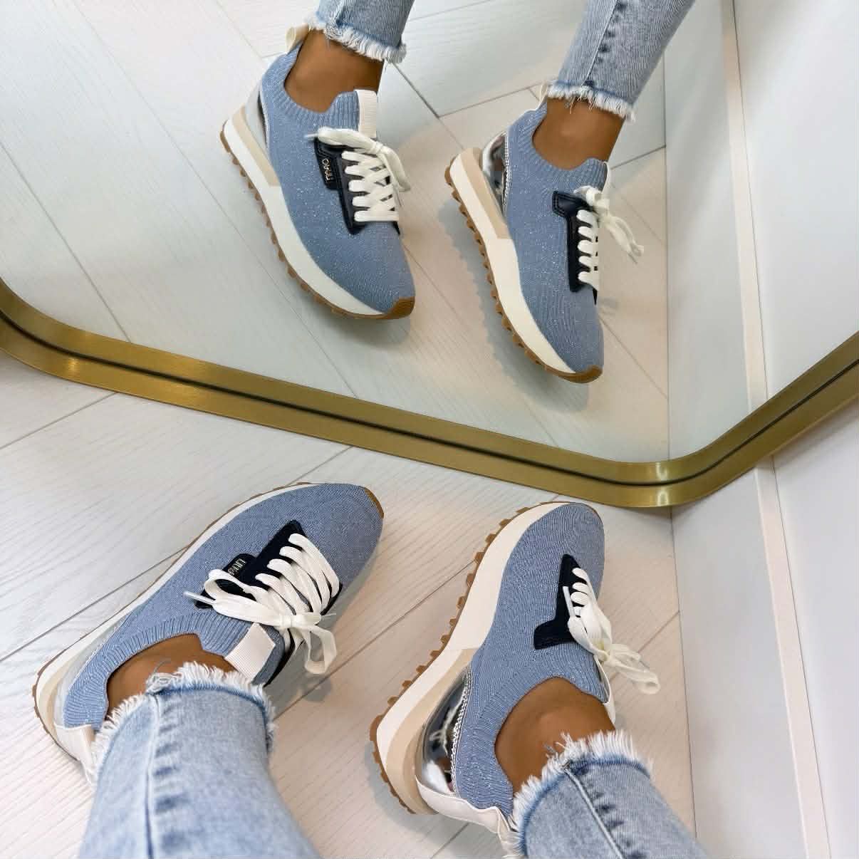 OMG!! De allernieuwste collectie van LIU JO nu bij ons verkrijgbaar! Hoe gaaf zijn deze sneakers met de gave blauwe tinten?!