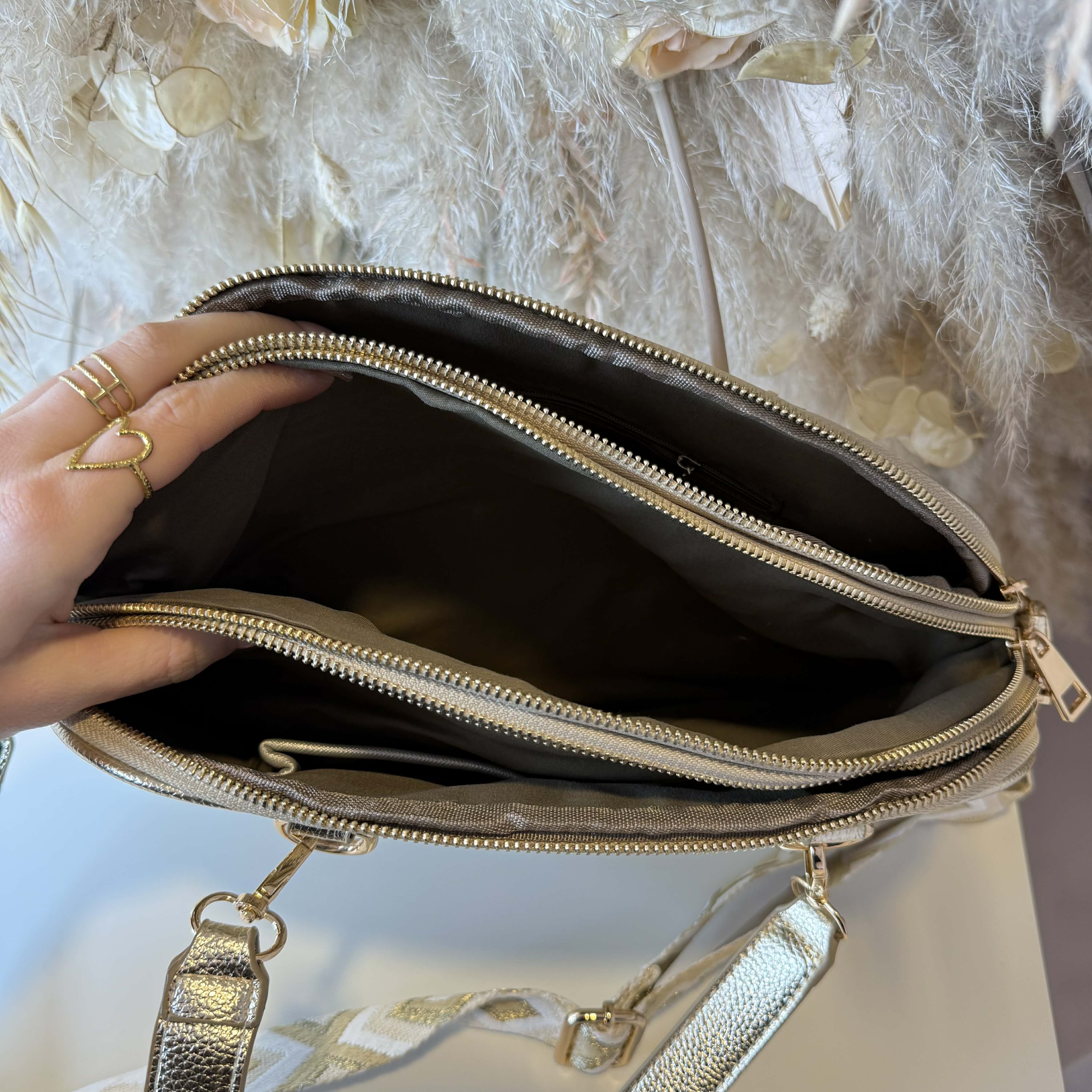 OHMYYYY, Deze gave tas wil je toch hebben?! De tas heeft een shine look en is echt super handig door de 3 apparte vakken! Je kunt er al je spulletjes netjes in opbergen! Echt een perfecte musthave!