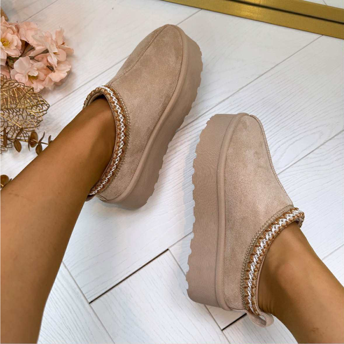 YAAAAAYY, we hebben weer SUPER lekkere pantoffels binnen! Ze hebben een suedine look en ze zijn HEERLIJK furry van binnen. Heerlijk warm en SOFT! Deze variant heeft een mooie dikke zool!