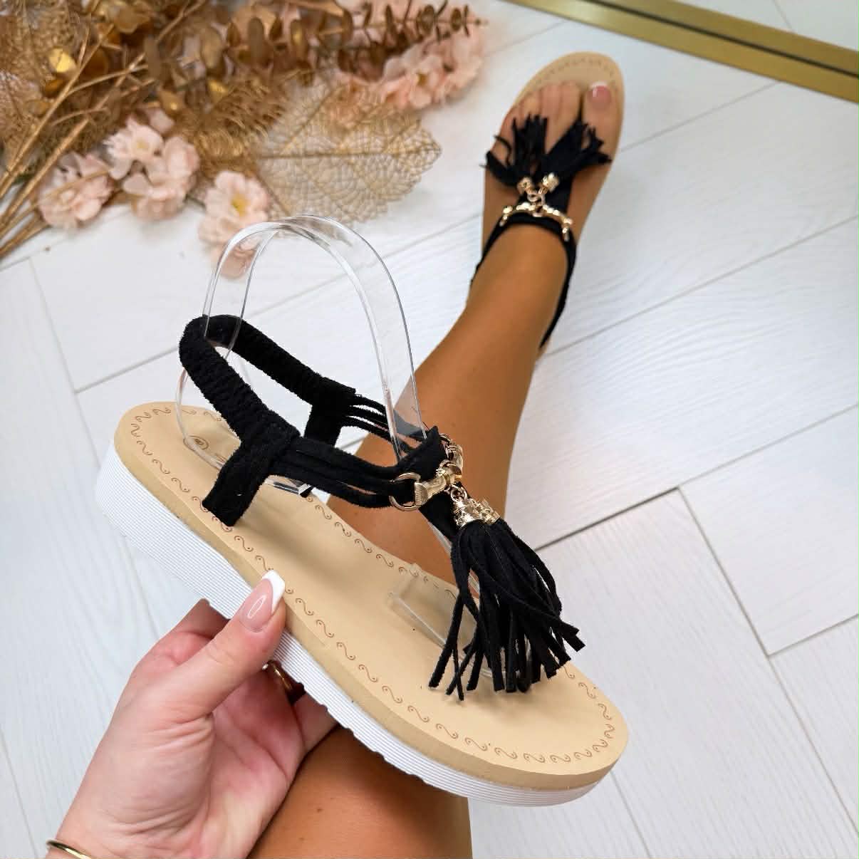 We hebben weer HEERLIJKE sandalen binnen! Dit model heeft LEUKE flosjes! Ze hebben een super COMFY voetbed. Deze makkelijke sandaaltjes kun je makkelijk combineren en ze hebben een elastieke band aan de achterkant! MUSTHAVES!