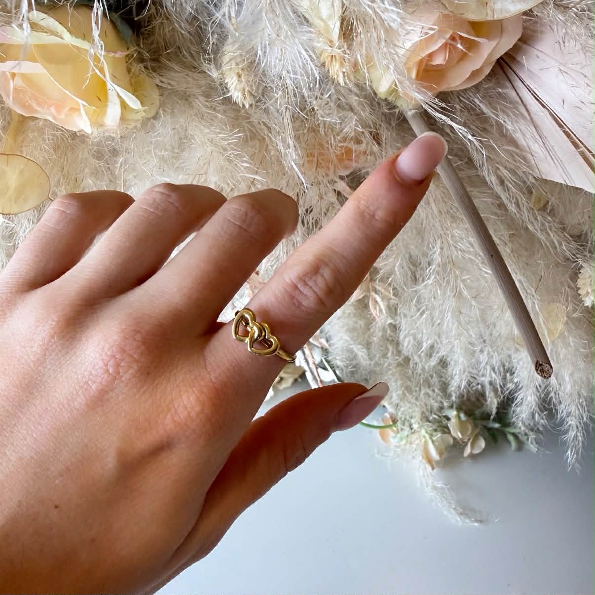 We hebben PRACHTIGE sieraden binnen! Deze ring heeft PRACHTIGE hartjes die verbonden zijn! Combineer met de andere prachtige sieraden om je outfit echt HELEMAAL compleet te maken!