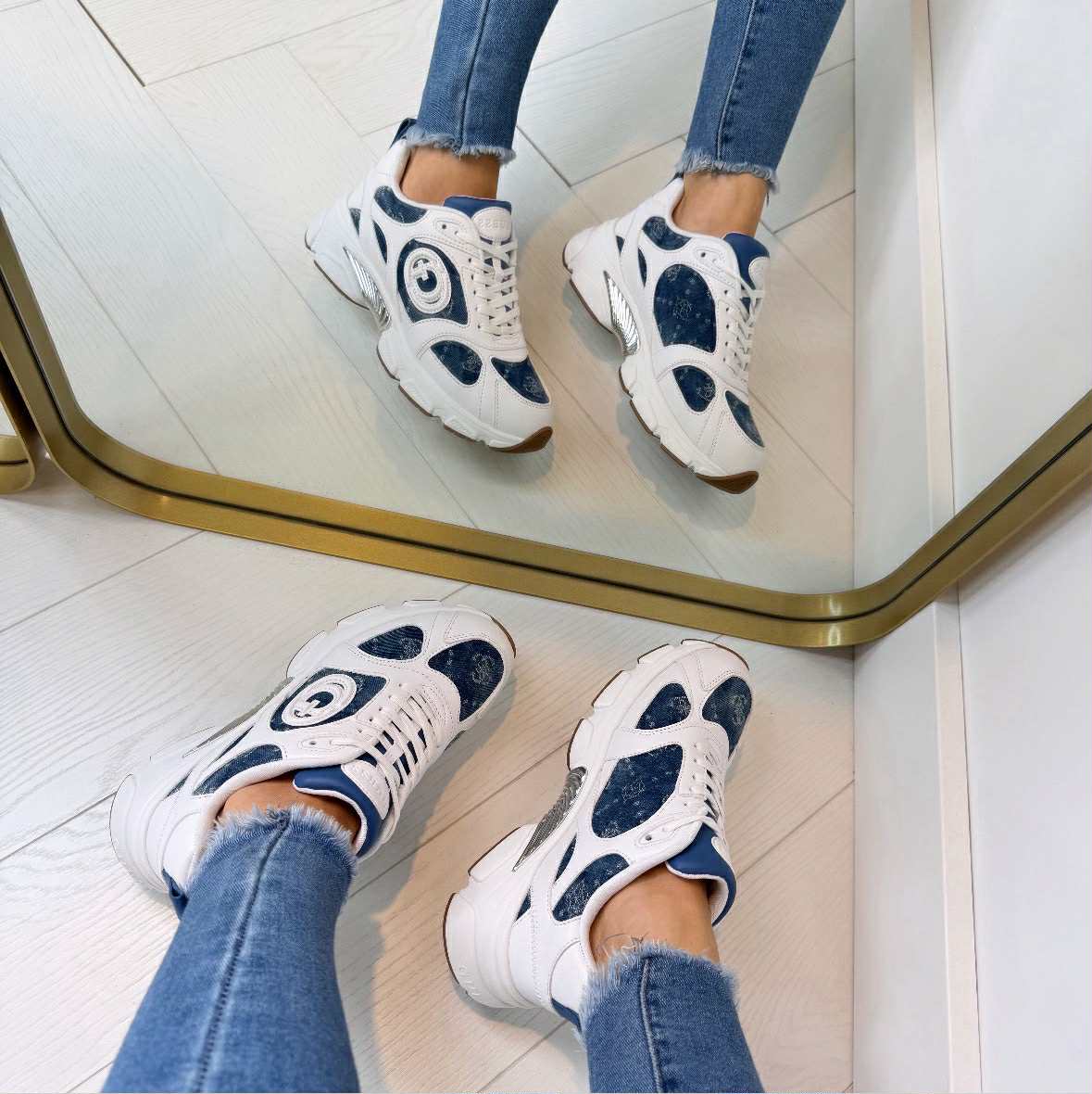 We hebben super gave sneakers binnen van het merk Guess. De sneakers zijn gemaakt van mooi materiaal, heeft duidelijk logo en is prachtig afgewerkt met 4G LOGO Details om de schoen af te maken!