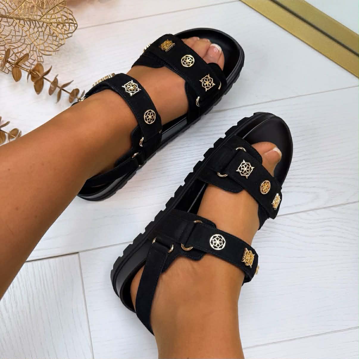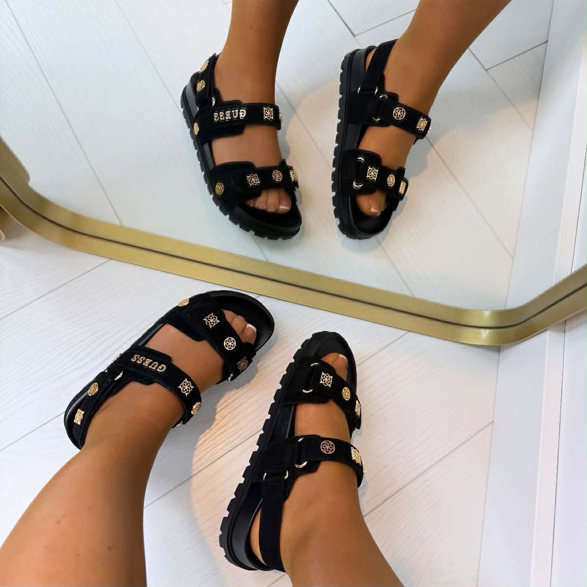 OHMYYYYYY, kijk nou!! Wat een GAVE sandalen hebben we binnen van Guess! De sandalen zijn van suedine met PRACHTIGE logo's bovenop! Handig te verstellen met het klittenband!