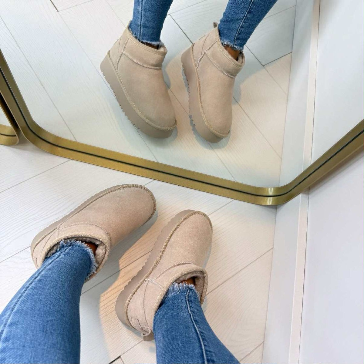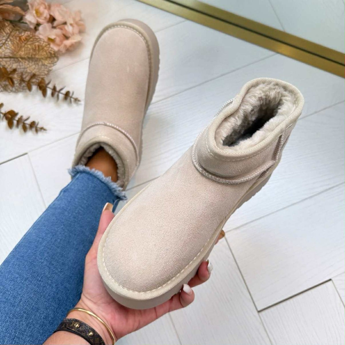 - Ze vallen naar maat uit! Twijfel je tussen 2 maten? Neem dan de grootste! Houdt er rekening mee dat je het 'bontje' aan de binnenkant nog een beetje plat loopt.