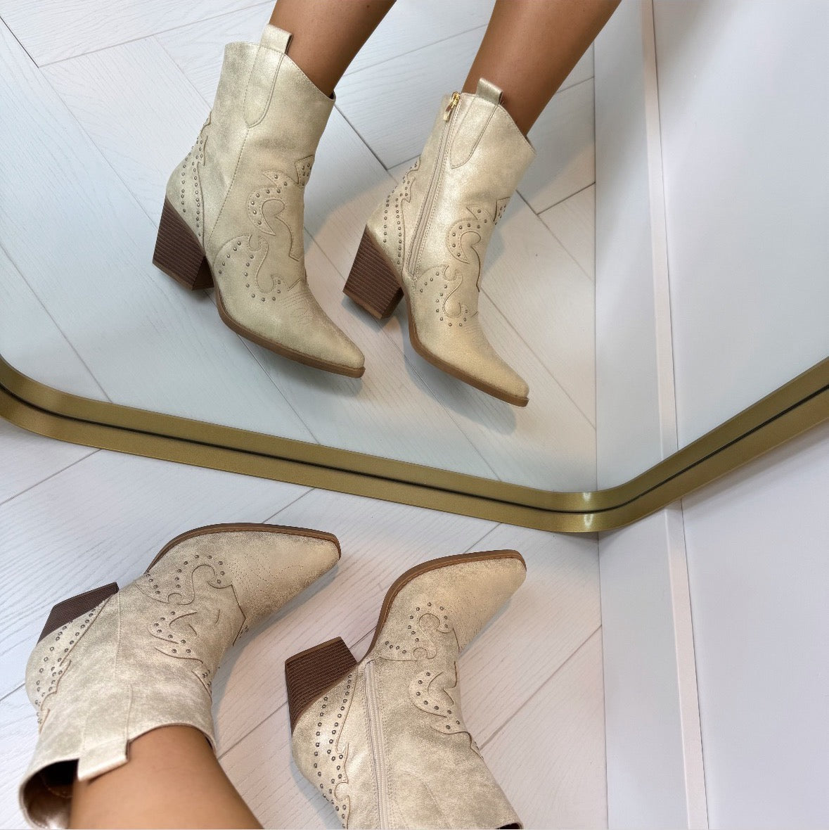 Wat hebben we weer GAVE boots binnen! Brede hak dus lekker COMFY! Hier kun je het wel de hele dag op uithouden! SUPER leuk te combineren met al jouw favo outfits. De boots hebben een prachtige patroon met studs, hierdoor kun je echt SHINEN!