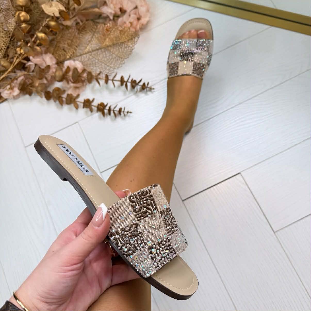 YAAAAYY, er is een Super gave nieuwe collectie van Steve Madden vol met rhinestones! Deze slipper heeft een comfy band en sparkles! Combineer het met een Sparkling nieuwe Steve Madden tas! Ze zitten heerlijk!