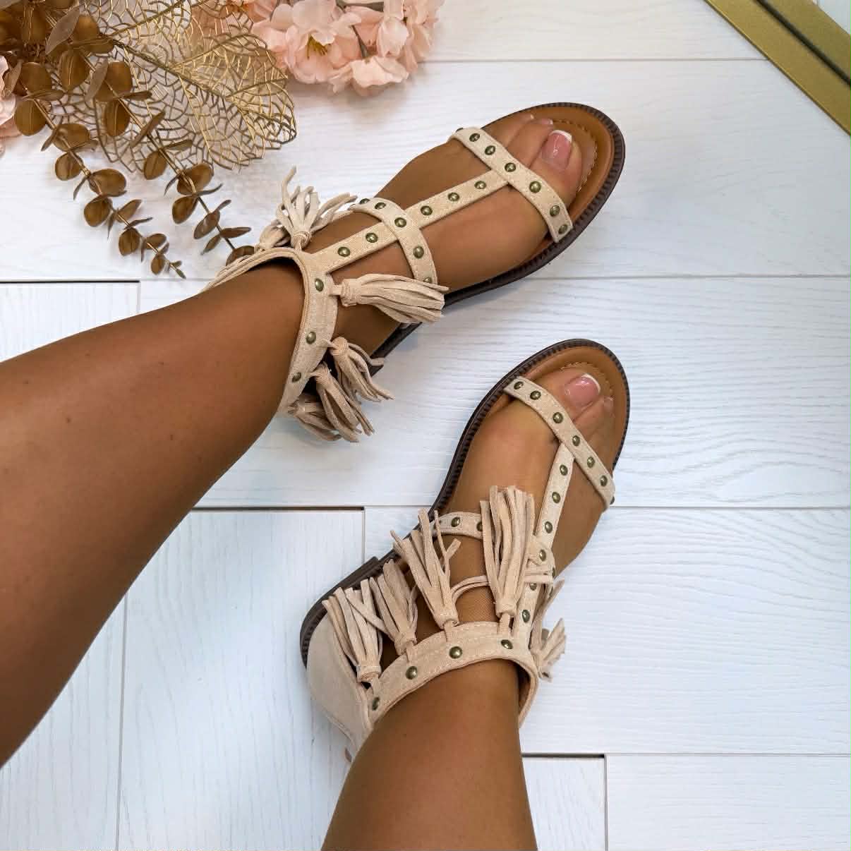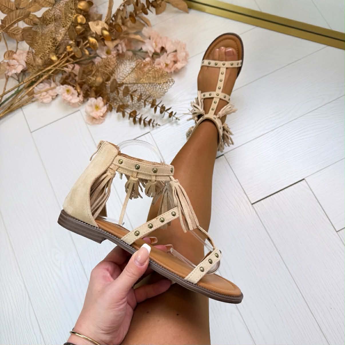 STUDS FRINGE SANDAAL X5-510 - BEIGE