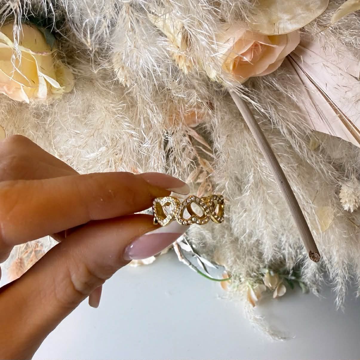 We hebben PRACHTIGE sieraden binnen! Deze ring heeft PRACHTIGE diamond heart details! Combineer met de andere prachtige sieraden om je outfit echt HELEMAAL compleet te maken!