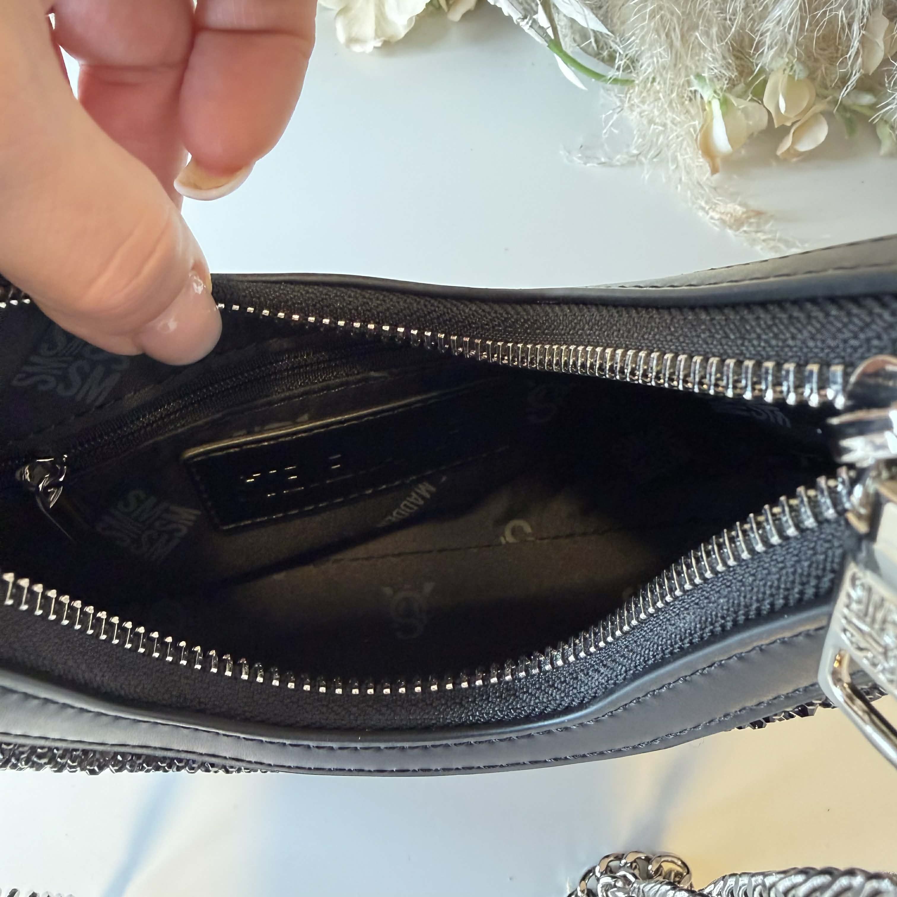 Super gave tas van het merk Steve Madden ! De tas heeft een ritssluiting, zodat al je spulletjes veilig opgeborgen zitten. Binnen in de tas heb je nog een ritsvakje en een apart vakje om je spulletjes netjes te sorteren. Met een super gave tas chain al aan de tas verwerkt kan eraf gehaald worden! Echt een perfecte musthave!