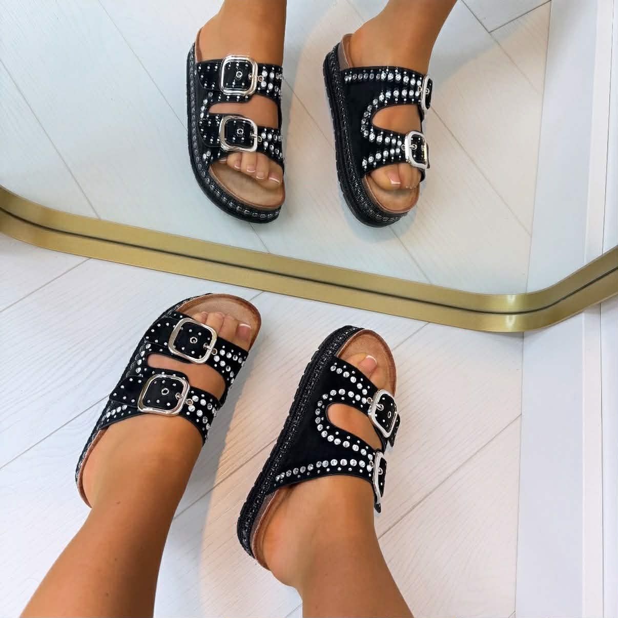 We hebben weer HEERLIJKE slippers binnen! Dit model heeft een comfy zool en prachtige SPARKLING details!! Ze hebben een super COMFY voetbed. Deze makkelijke slippertjes zijn een MUSTHAVE komend seizoen!