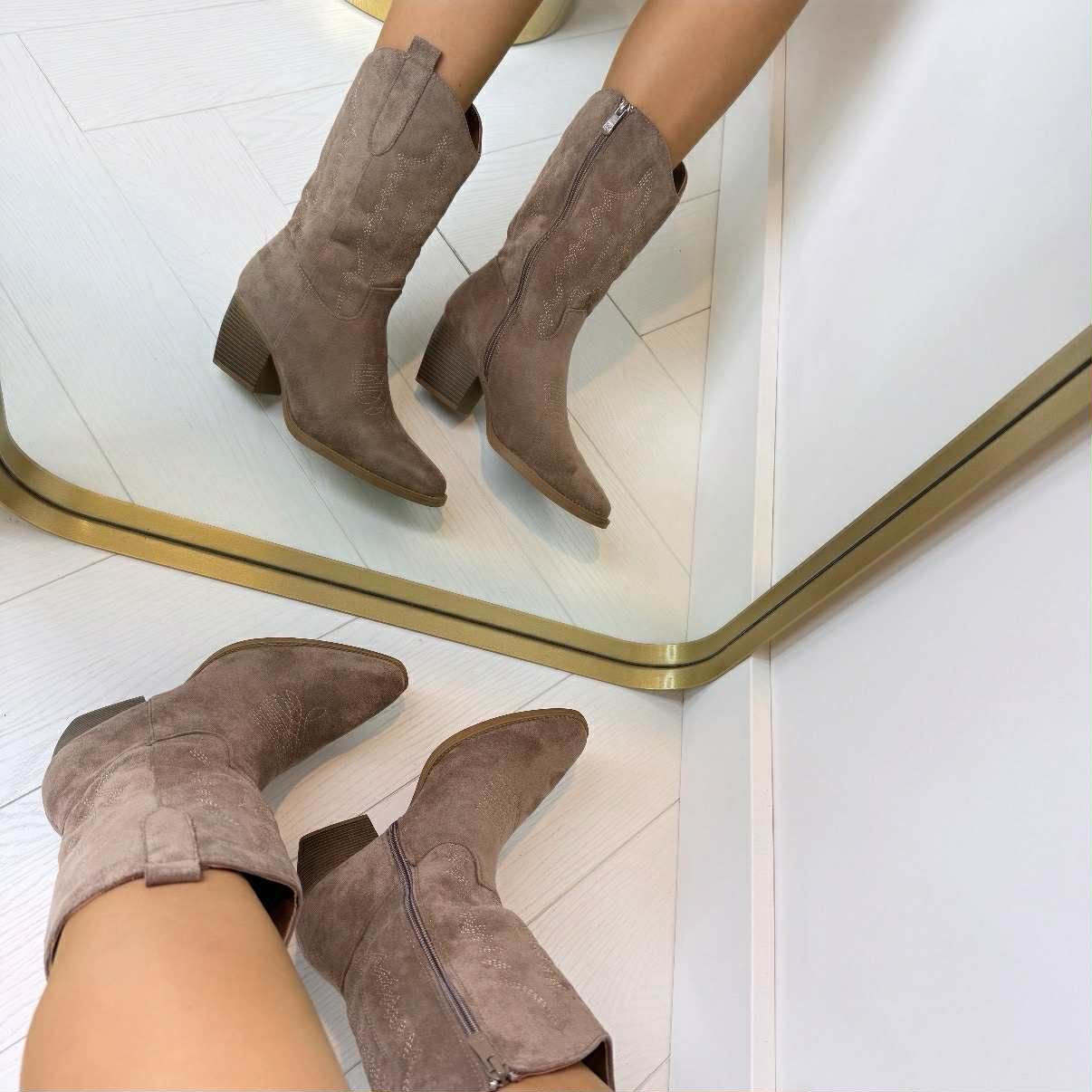 We hebben weer prachtige cowboy laarzen weten te bemachtigen in een mooie suedine stof met bijpassend gestikt motief! Zijn ze niet helemaal GE-WEL-DIG? Wij zijn fan! Wees er snel bij!