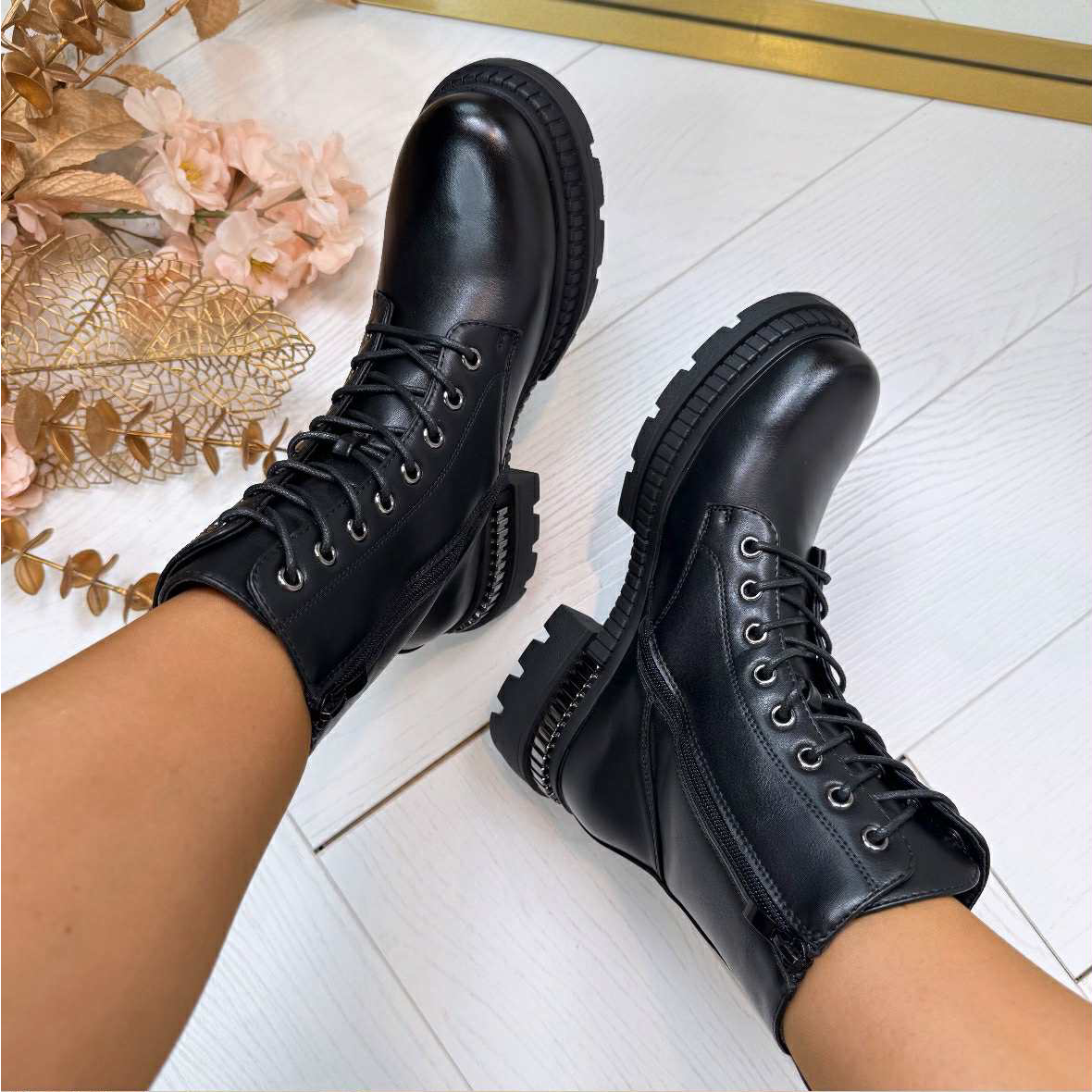 WAUWWW, check deze SUPER mooie leather look veter boots met een PRACHTIG detail aan de zijkant! Ze zijn SUPER fun en leuk te combineren met veel verschillende outfits! Wacht niet langer en vul jouw schoenenkast aan met deze prachtige boots!!
